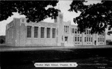 Monochrome postcard of The Chester High School on Maple Ave, Chester, N.Y. shortly after it was built in 1935.Subject Place