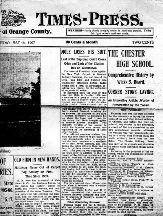 Dear Sir: —Nothing in my life has given me so much of satisfaction as the success of my pupils in the Chester schools, and to know that after thirty years I am still thought worthy of a place in their memory, and no one who participates In the ceremonies of laying the corner stone of your new building, or who will participate in its dedication, when completed, will have greater pride in it than I, in far off California, will feel. The success, of your school In the past and in the future has been due and will be due; not to any teacher, not to any principal, not to any Board of Education alone, but to the sturdy manhood and womanhood of the people of Orange County, and of your community. There Is an education, in goodness and greatness in your hills and fields, and Woods and streams. That this spirit may inspire your teachers, and compel your pupils, while It animates your Board of Education, and encourages the sacrifices so often necessary to the parents who will give education to their children, is lay most sincere wish. I am hoping to be in the east in June and to see for myself the many improvements of which I hear.