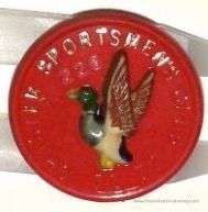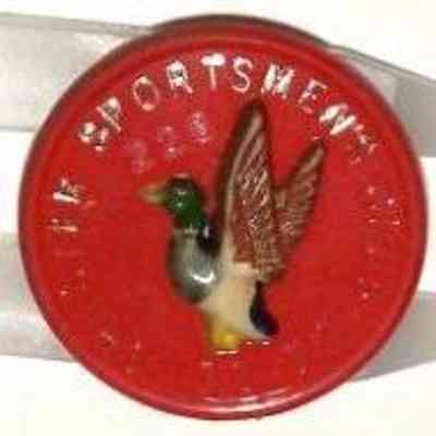 The image shows a circular red badge with raised lettering around the edge that reads "Chester Sportsmen Club" for 1971-72 and # "226." In the center, there's a detailed, three-dimensional depiction of a mallard duck, with vibrant colors including green on the head, a white neck ring, and a yellow beak. The duck is positioned with wings raised as if preparing for flight, adding a sense of movement and dynamism to the design.