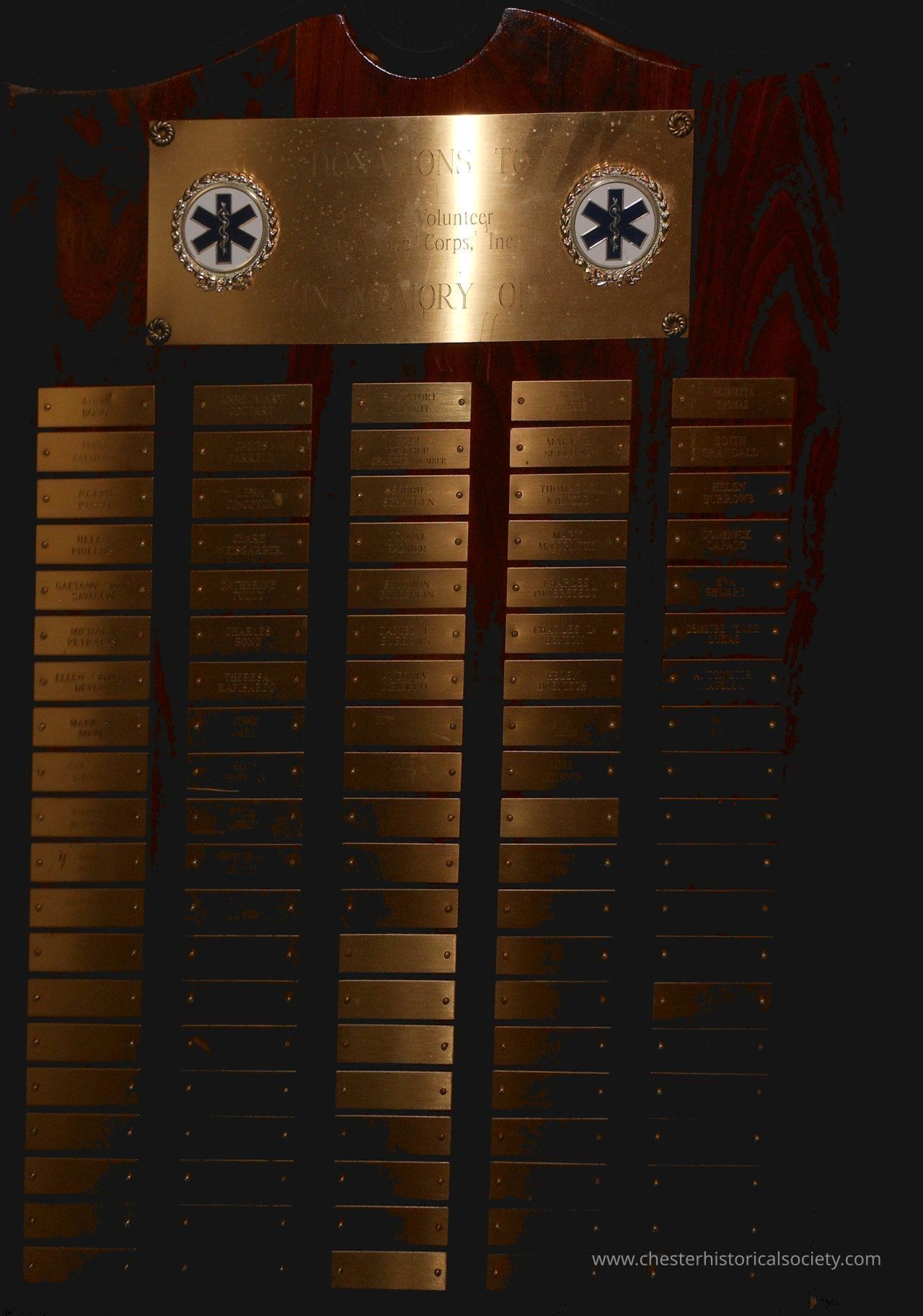 Chester Volunteer Ambulance Memorial Donations PlaqueEntry/Object ID