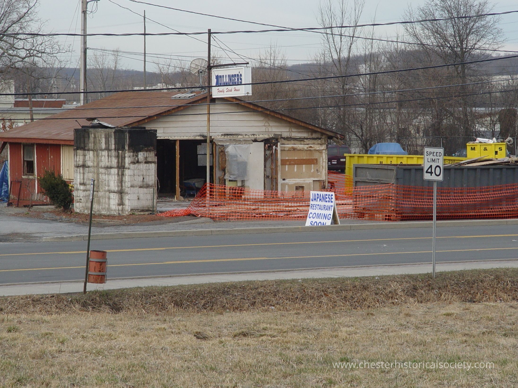 Dillinger's Family Steak House demolition on March 28, 2006 to make way for Magoya Japanese Restaurant at 41 Brookside Avenue Chester, NY 10918.Photograph Details