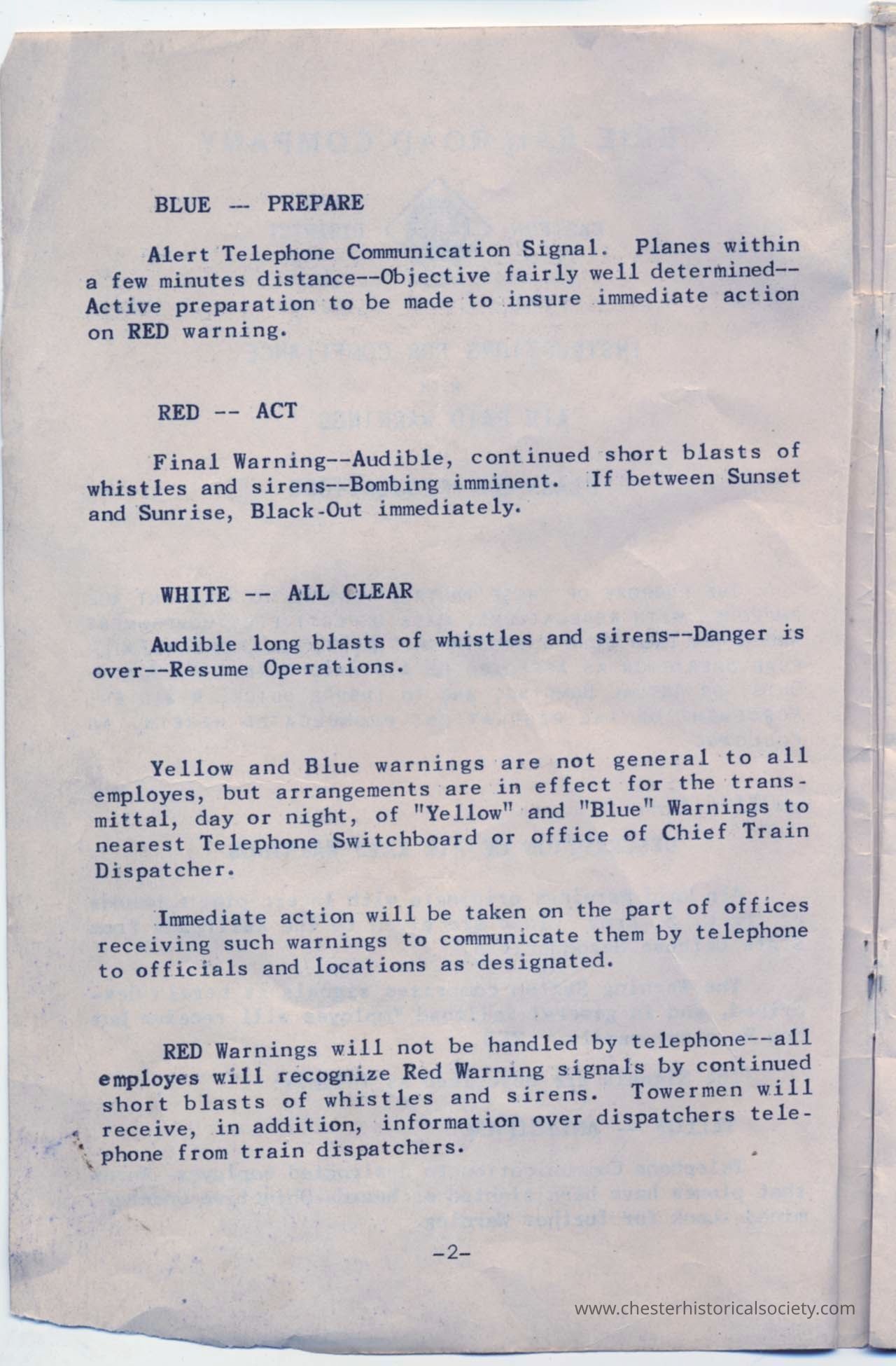 RED Warnings will not be handled by telephone--all employes will recognize Red Warn1ng signals by continued short blasts of whistles and sirens. Towermen will receive, in addition, information over dispatchers telephone from train dispatchers.