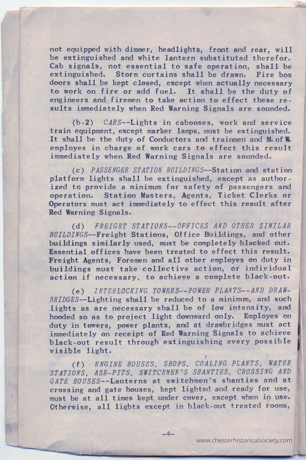 or sections, shall be extinguished, and employes performing essential work, during the black-out, must use low intensity flashlights showing a white light. It shall be the duty of engine house foremen, coaling plant employes, ash-pit men, yardmasters and switchmen to carry out these provisions. Crossing or gate tenders will be responsible for keeping all lights under cover when hot in use.