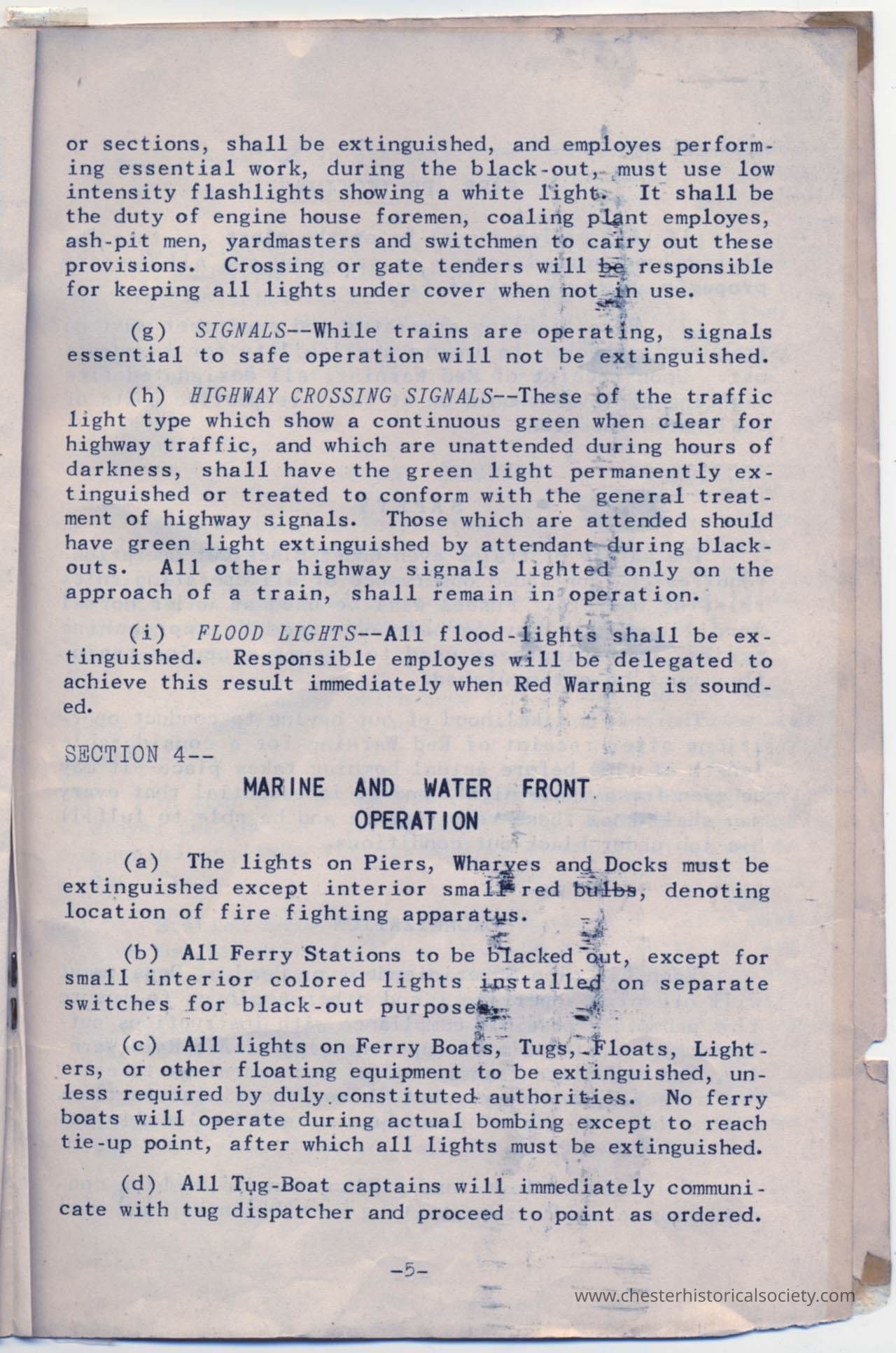 (b) All Ferry Stations to be blacked-out, except for small interior colored lights installed on separate switches for black-out purposes.