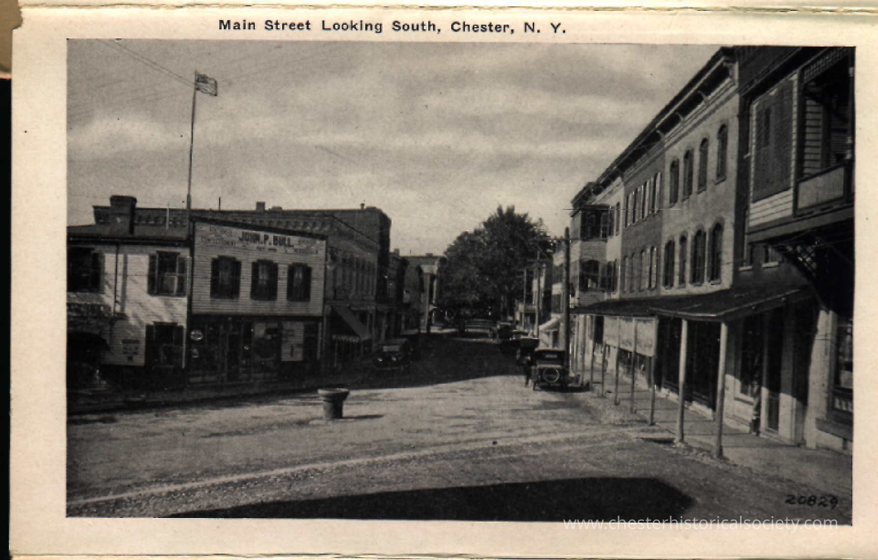 A collection of ten vintage postcards, each depicting different scenes from Chester, NY. The postcards exhibit a range of locations including a picturesque lake, several stately buildings, quiet streets lined with trees, and rural landscapes. The top left card features a labeled cover that reads "Souvenir Folder of Chester, N.Y.," indicating that these postcards were bundled together as a souvenir set, capturing the serene and historic elements of this location during an earlier period.Subject Place