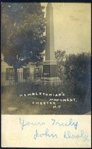 Hambletonian's Monument Chester, N. Y. postcard.Subject Place
