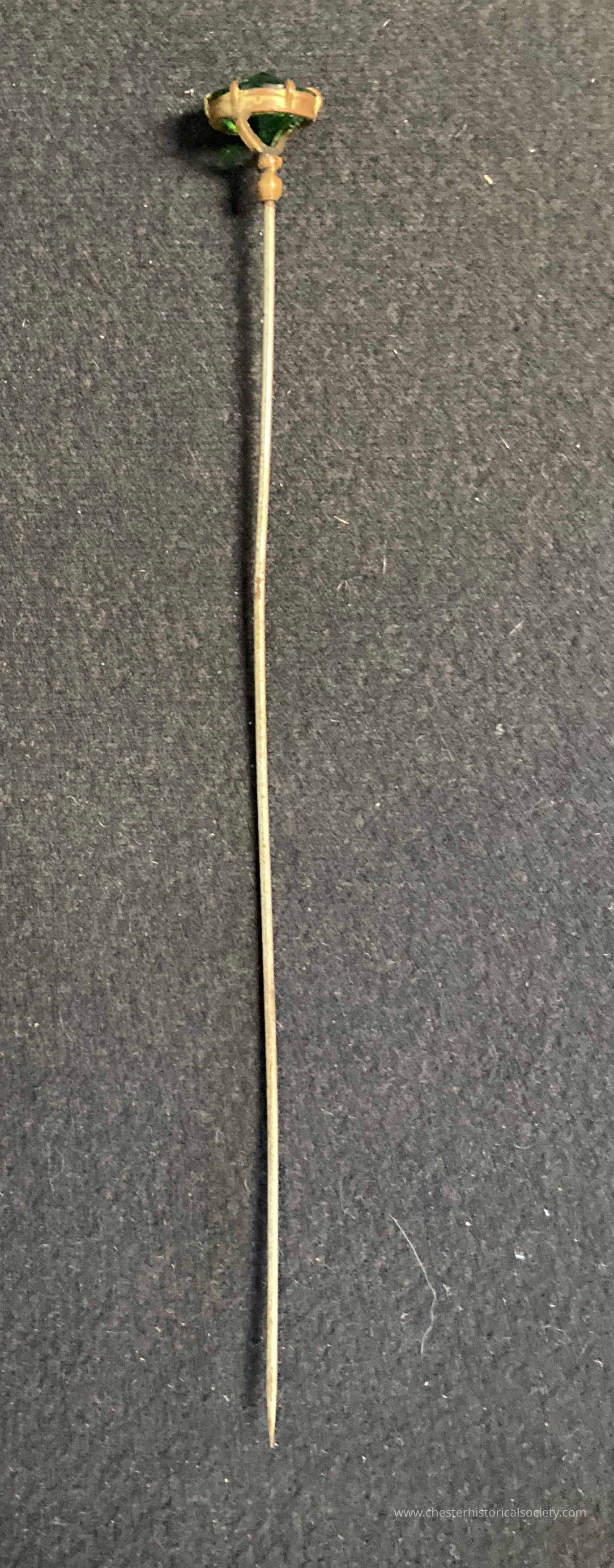 A hat pin with cut green glass finial.Acquisition