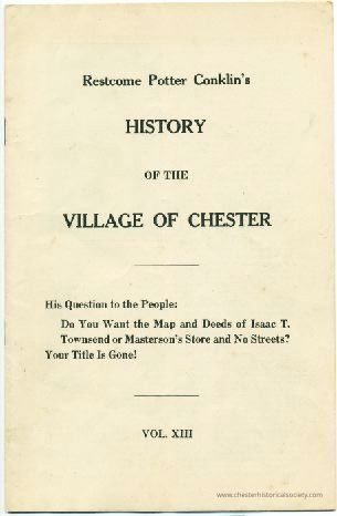 A series of pamphlets published at various times from June 1909 to December 1916, entitled "R. P. Conklin's History of the Village of Chester," have been received by The Telegram, and from a cursory examination reveal a peculiar state of public affairs in the Orange County municipality far-famed as the seat of the Onion Exchange.