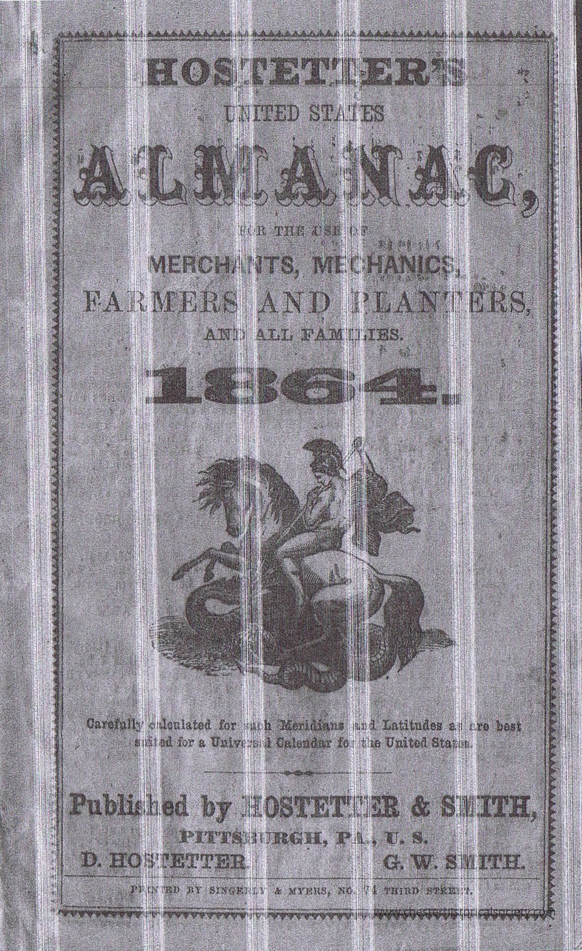 Hostetter, D., and G. W. Smith, comps. Hostetter's United States Almanac. for the Use of Merchants, Mechanics, Farmers and Planters, and All Families. Pittsburgh, PA: Hostetter & Smith, 1864. Print.Create Date