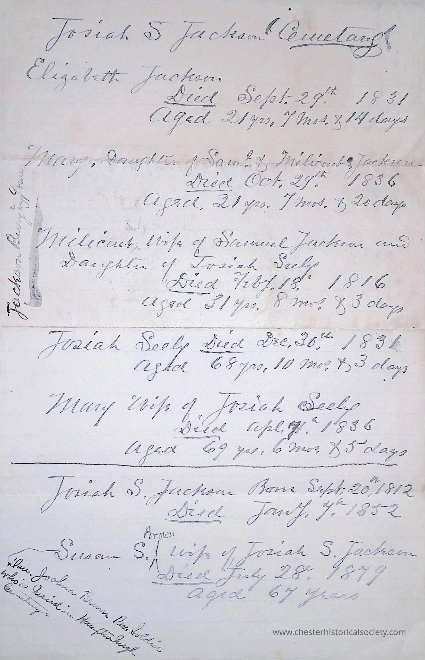 A record of the Jackson Family who resided in or around Chester, Orange County NY.Collection