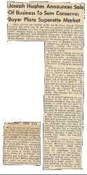 Sam Conservo, meanwhile, confirmed the purchase of the business and announced that he was planning extensive remodeling of the premises with the idea of opening a market of the superette type. He said that he would pose of most of the present stock between January 5 and 15 and would then begin the required remodeling.