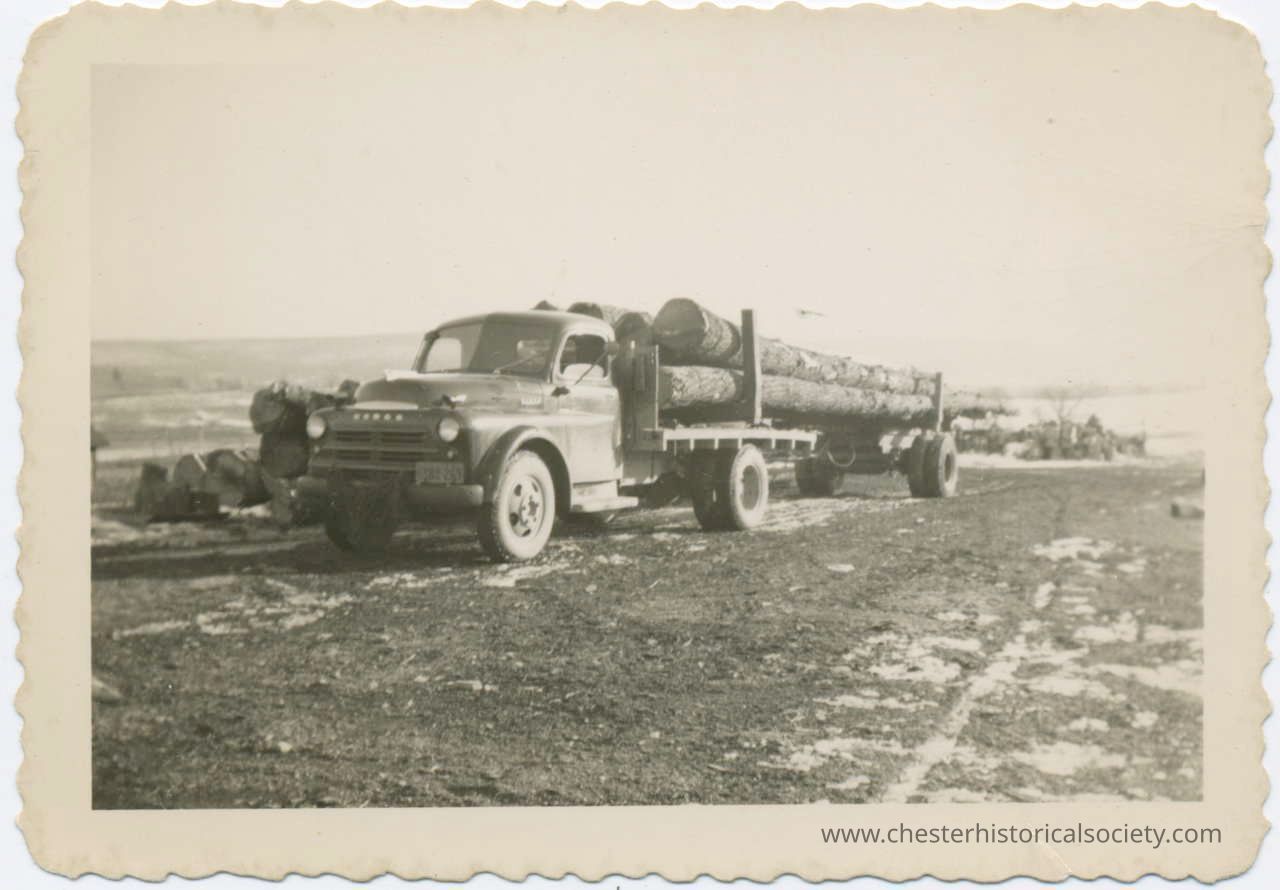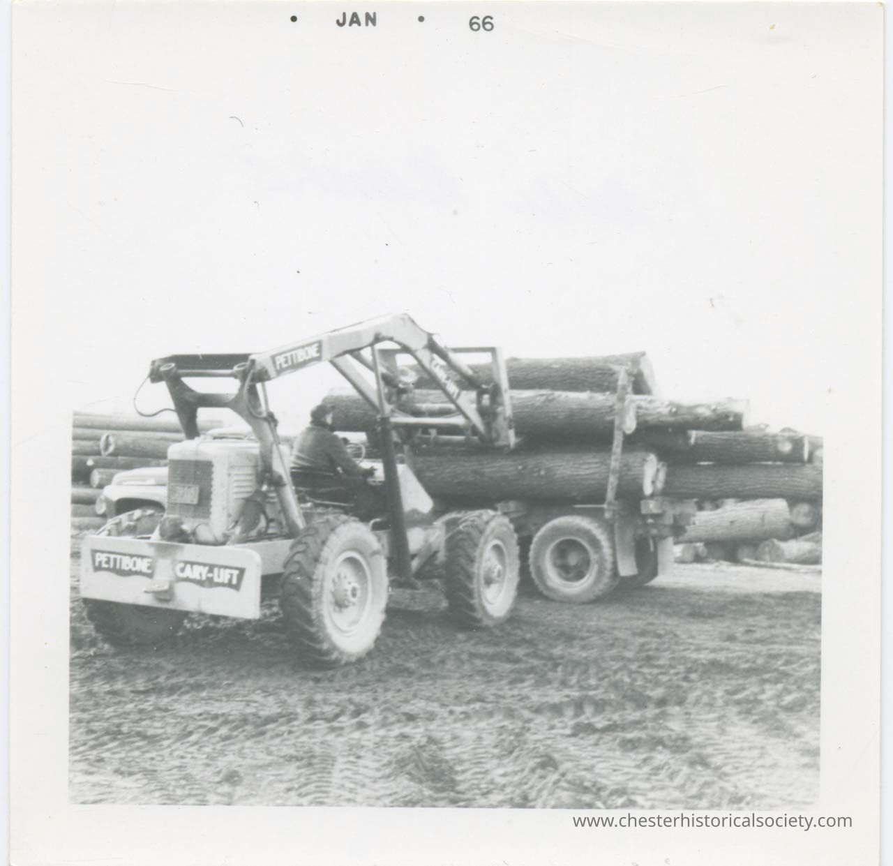 005 Rance Banks loading logs onto hauler, Jan., 1966.