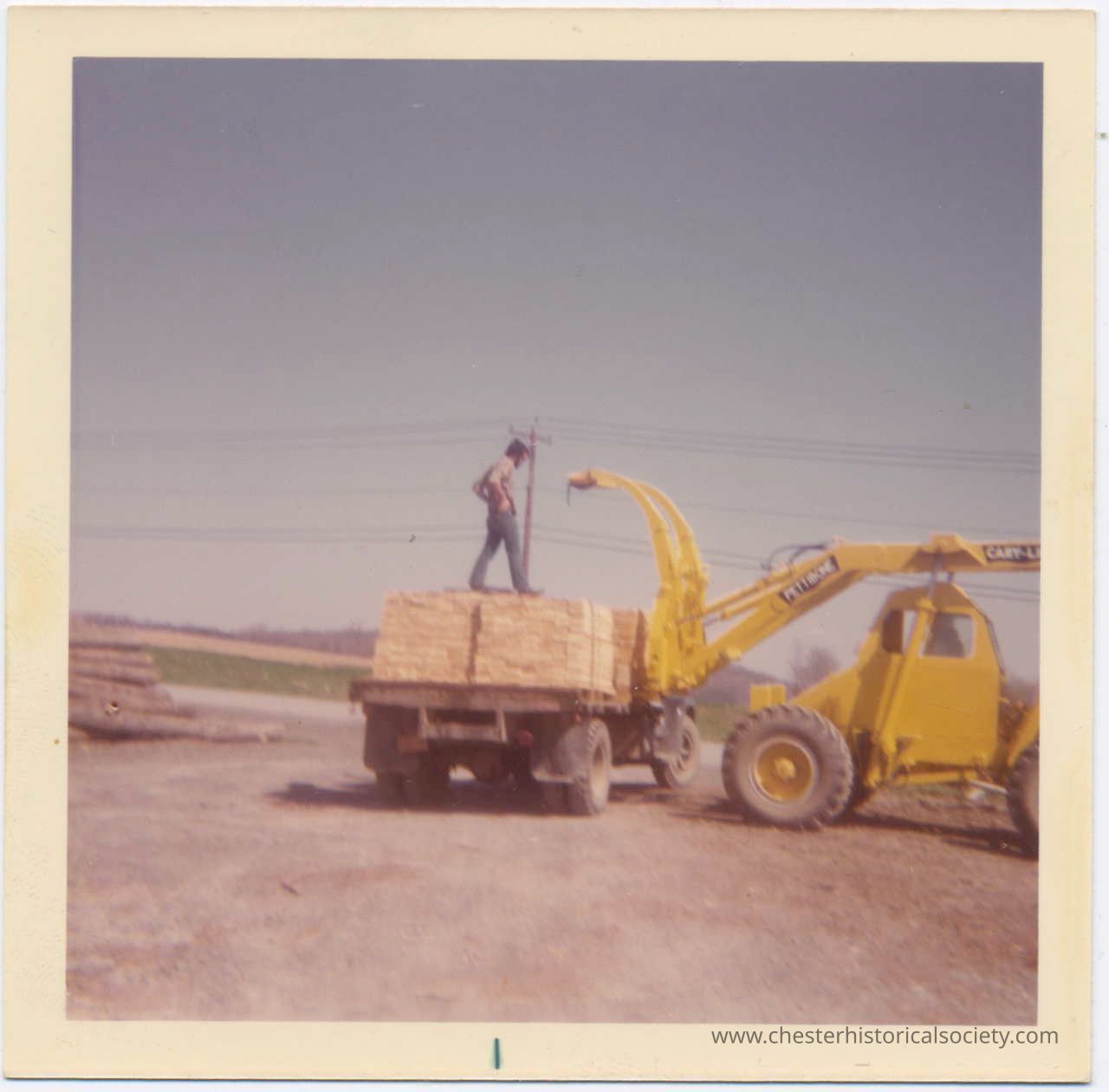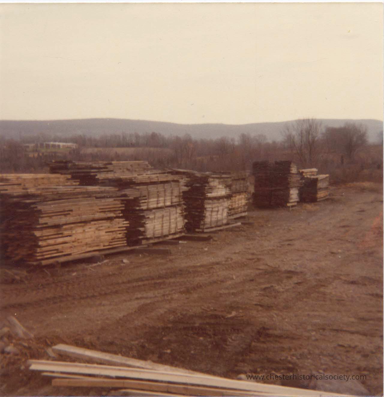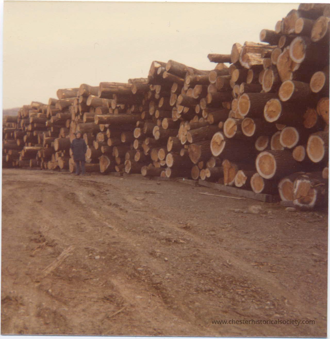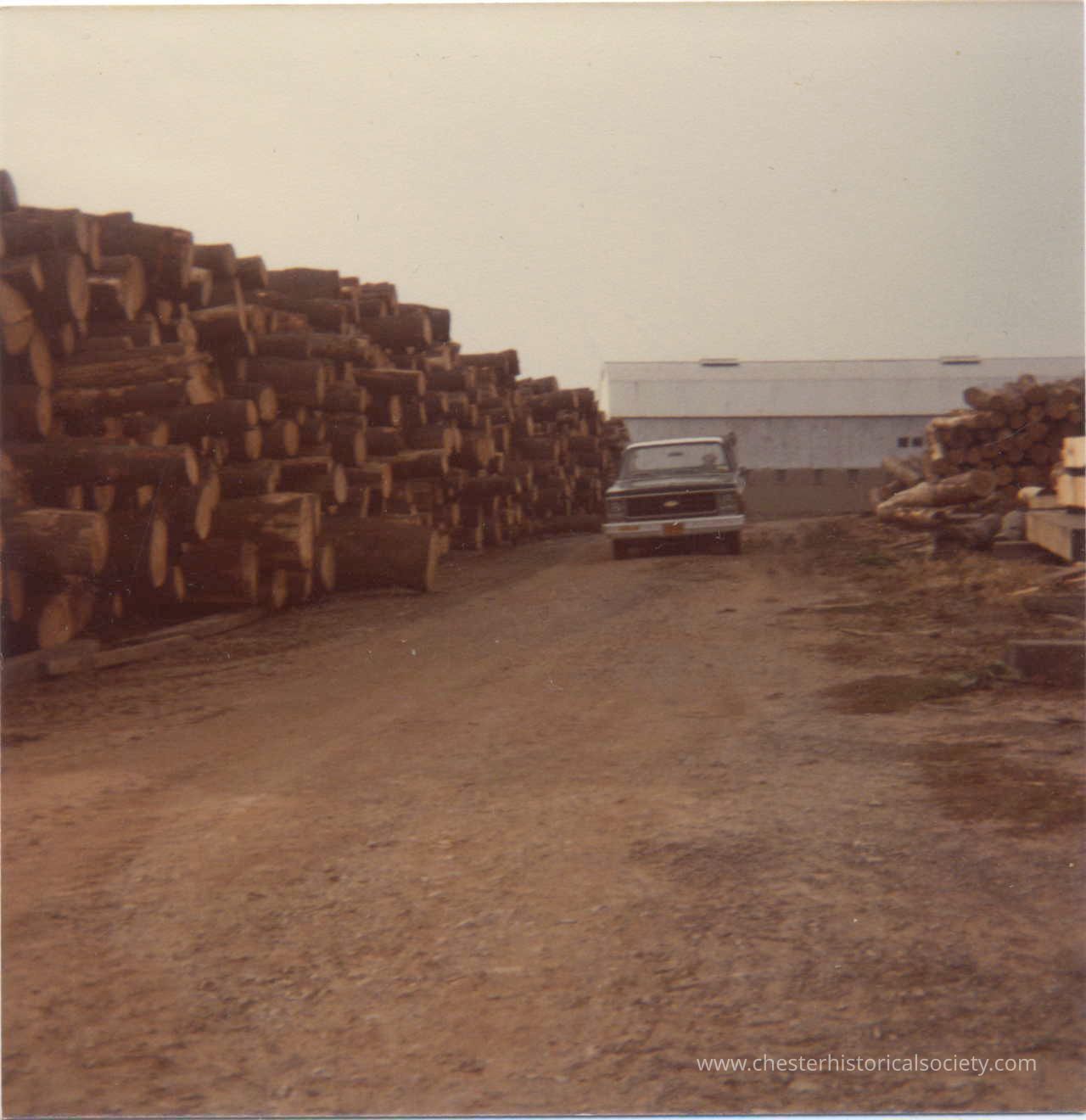 051 Pickup between stacks of logs at saw mill, 10-'81