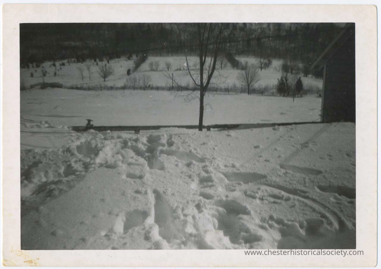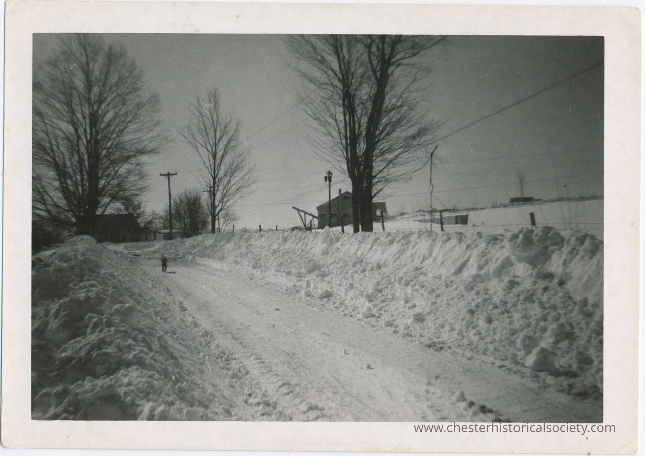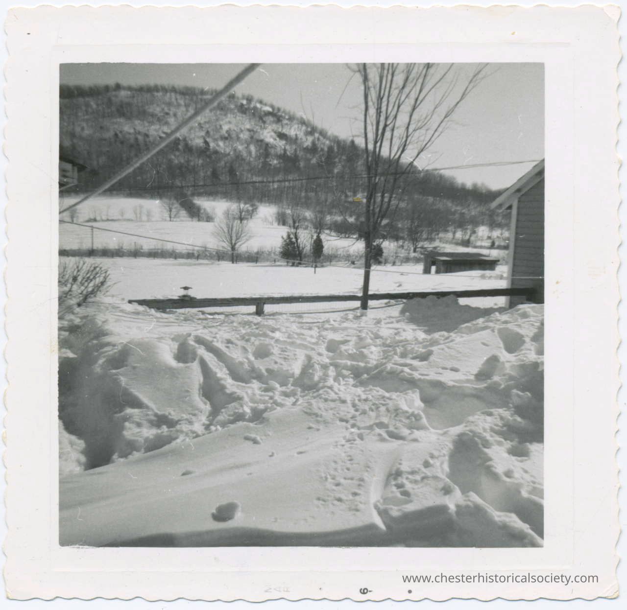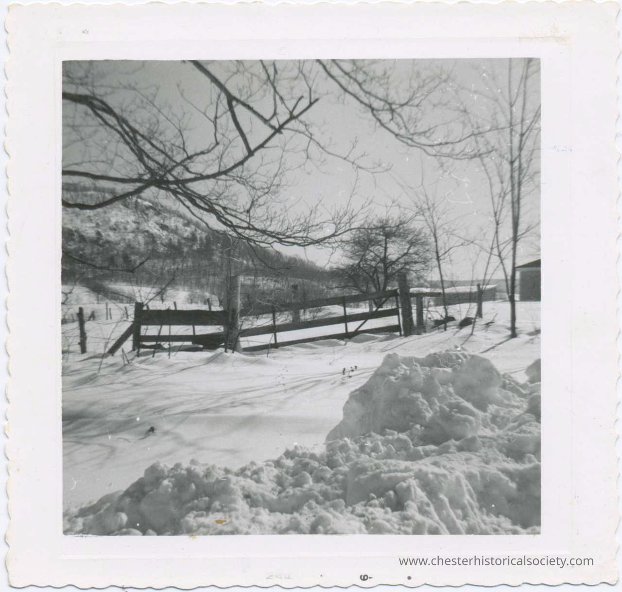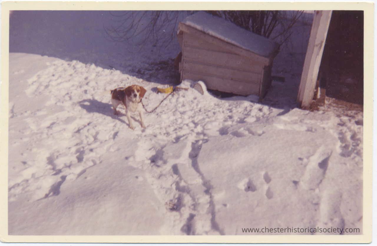 027 Dog in plowed Sugar Loaf road, Jan, 1961