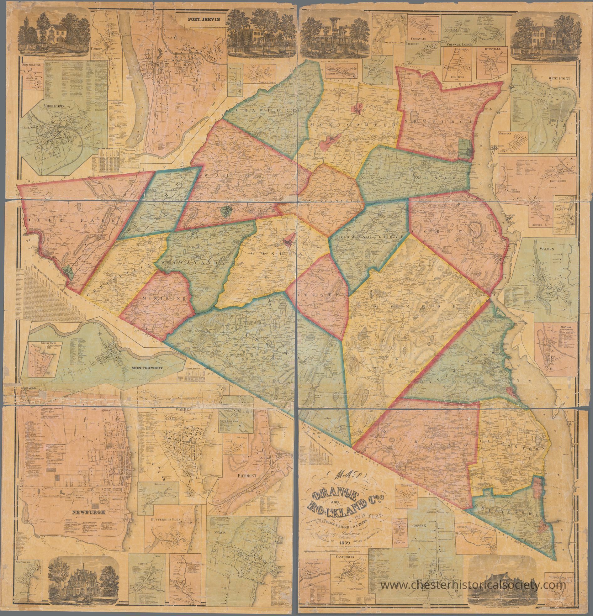 Content: Includes insets of towns, some with business directories: New Milford -- Middletown -- Florida -- Port Jervis -- Searsville -- Mount Hope -- Grassy Point -- Montgomery -- Newburgh -- Warren -- North Haverstraw -- Edenville -- Piermont -- Bellvale -- Buttermilk Falls -- New Windsor -- Warwick -- Spring Valley -- Nyack -- Denton -- Sugar Loaf -- Washingtonville -- Canterbury-- Goshen -- Garner Ville -- Sampsondale -- Tappantown -- Monroe -- Walden -- Chester -- Upper Nyack -- Westtown -- West Point -- Otisville -- Pine Bush -- Cornwall Landing -- Unionville -- Ridgebury -- Rockland Lake -- New City -- Salisbury Mills.