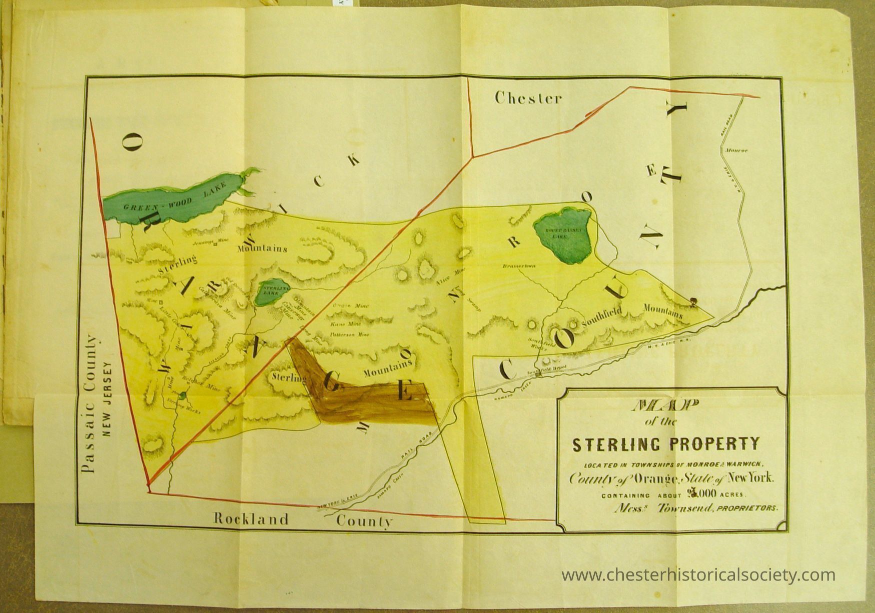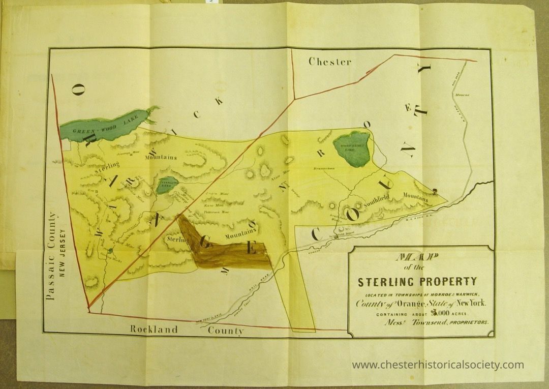 Passaic County New Jersey Lake Green-Wood Lake Sterling Mountains Sterling Rockland Kine Mine Mutterson Mine Lah In Mountains Countv Chester Honroe Lark Hramertern Southfield Mountains Map Of The Sterling Property Located In Townships Of Monroe& Warwick, Countrop Orange, State Of New York Containing About 28,000 Acres Mess' Townsend, Proprietors.General Notes