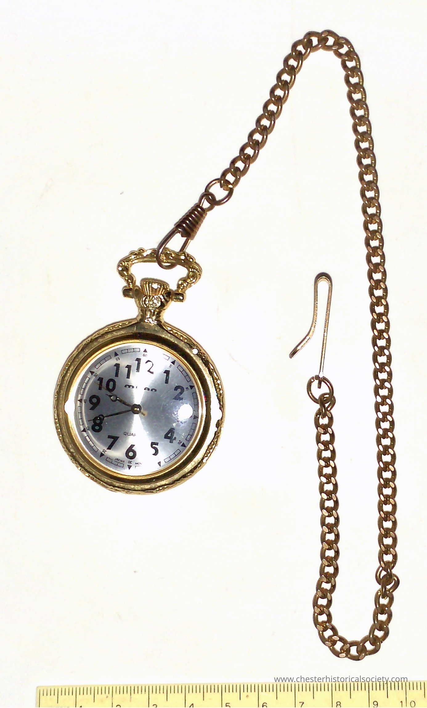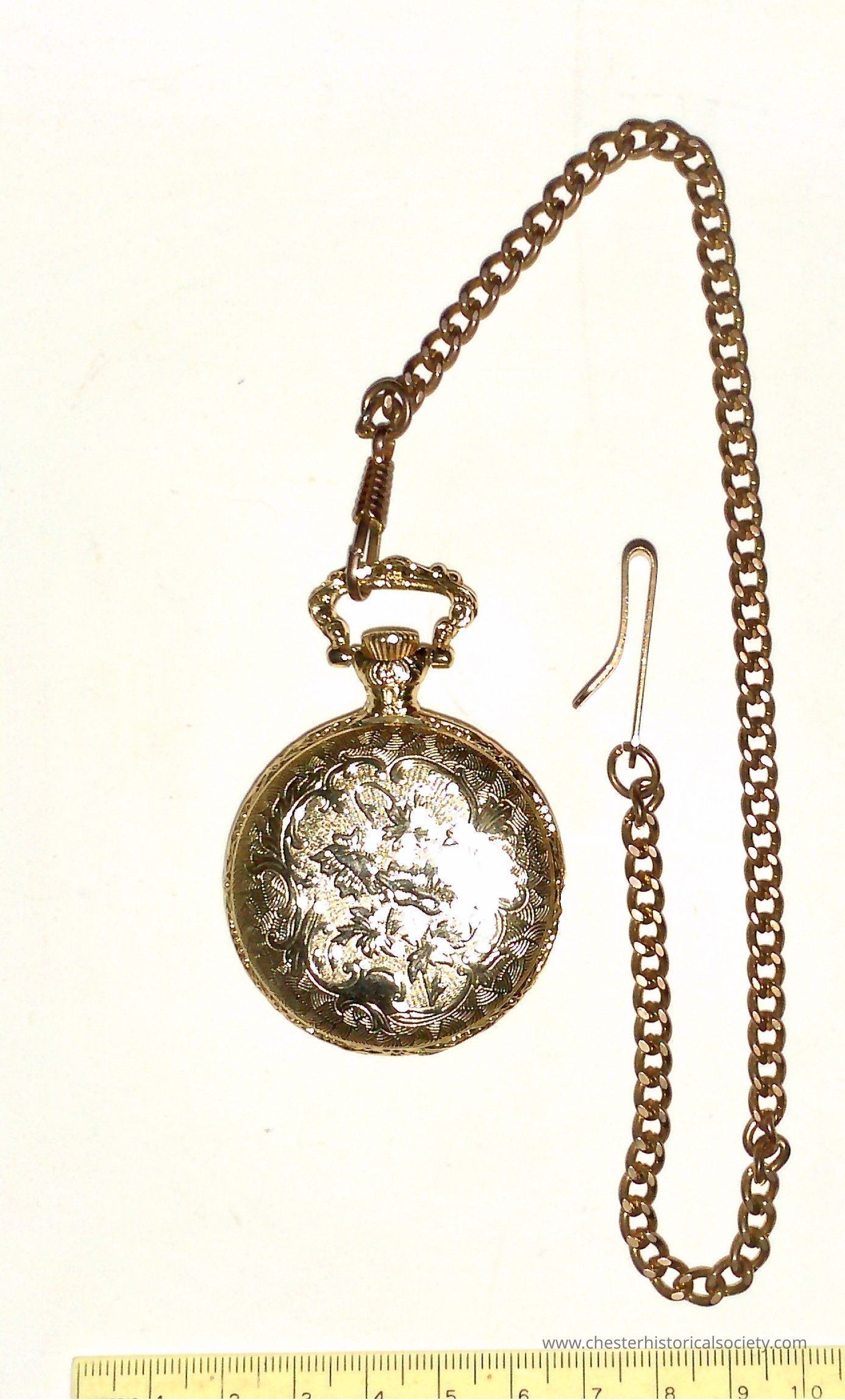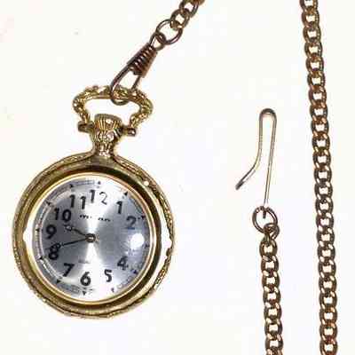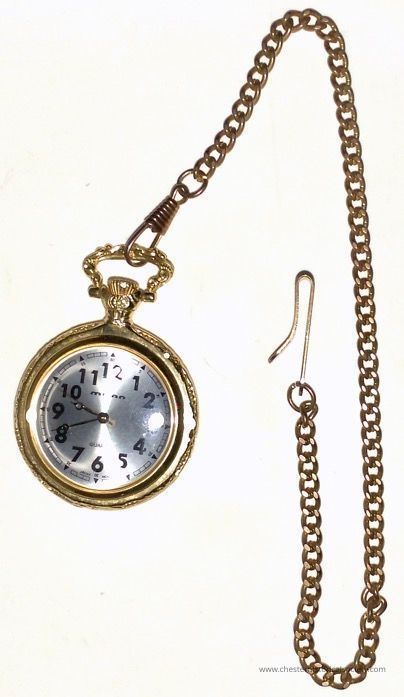 Milan Gold Tone Quartz Pocket Watch Vintage Japan Movt with copper chain.Context