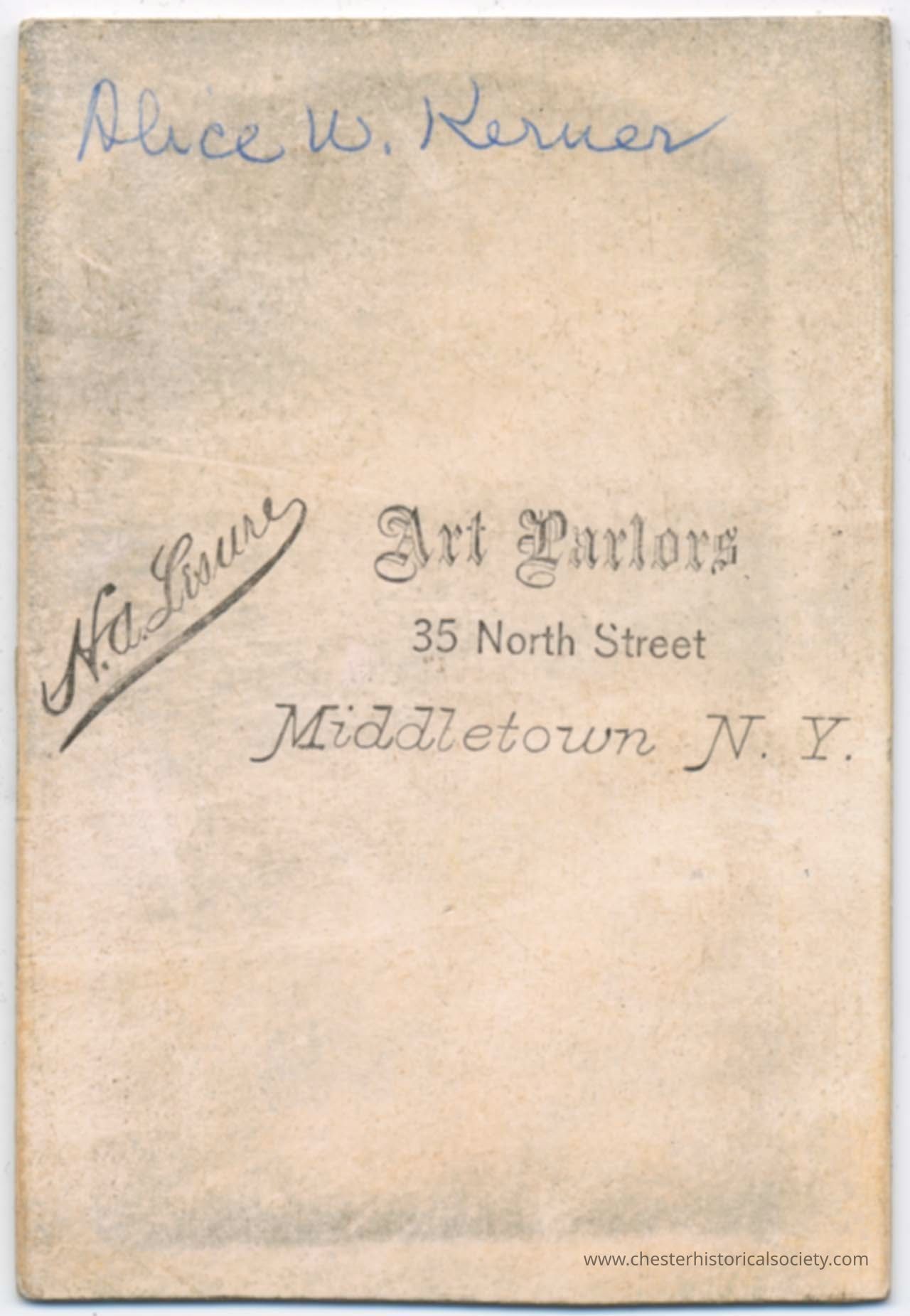 Alice W. Kerner - H. A. Lesure Art Parlors, 35 North Street, Middletown, N. Y. (front & rear)