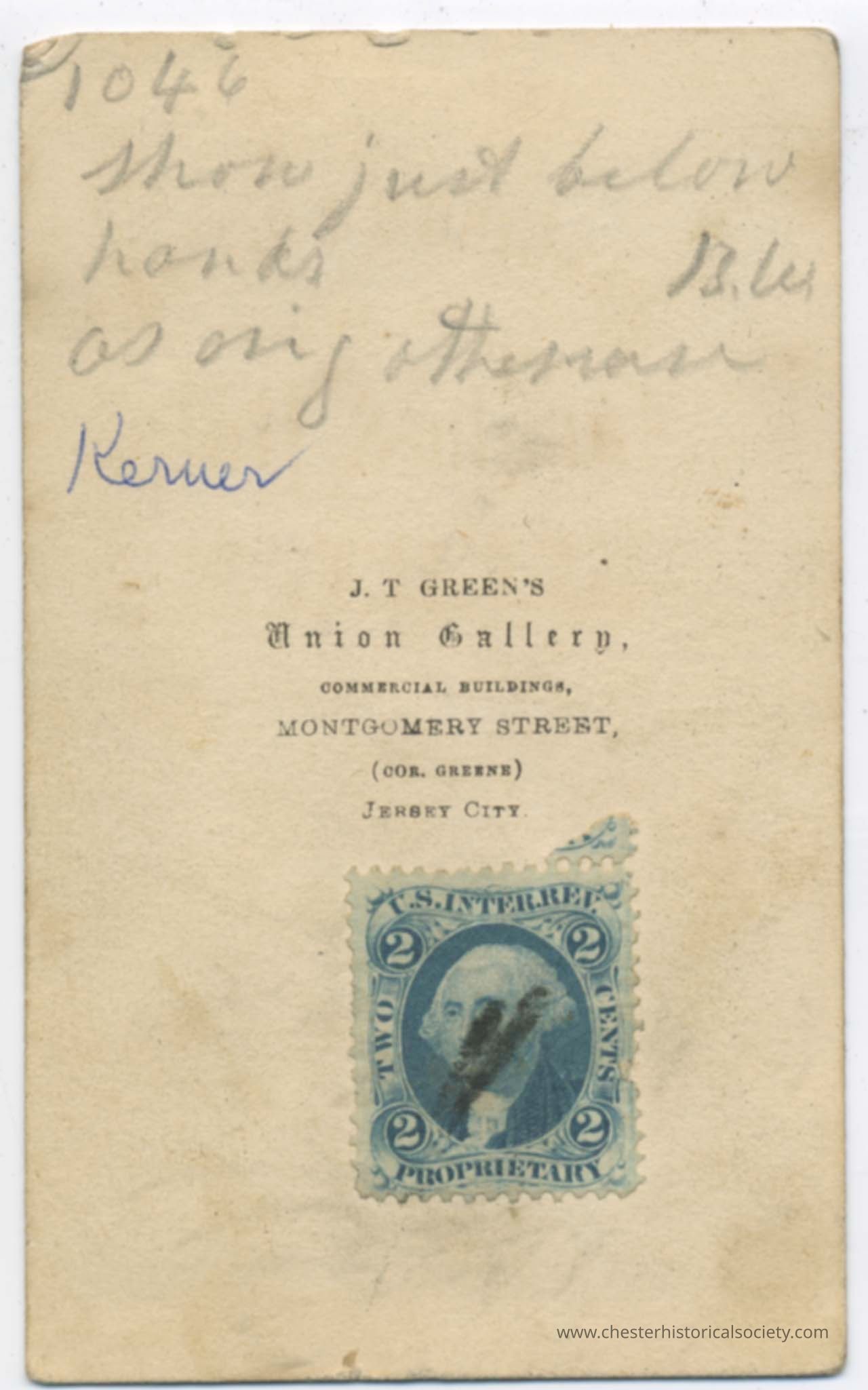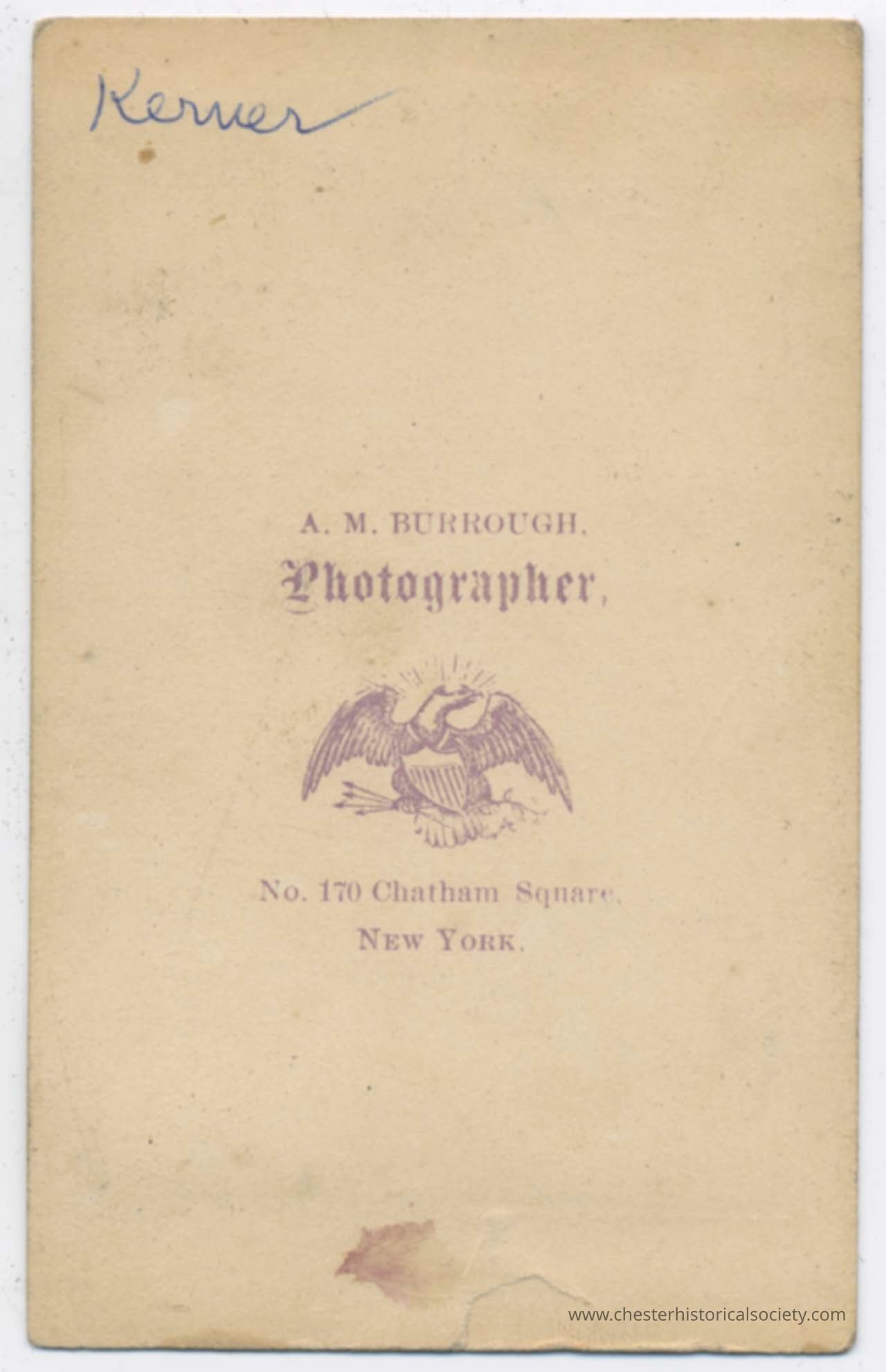 John G. Kerner? - A. M. Burrough, Photographer. No. 170 Chatham Square, New York (front & rear)