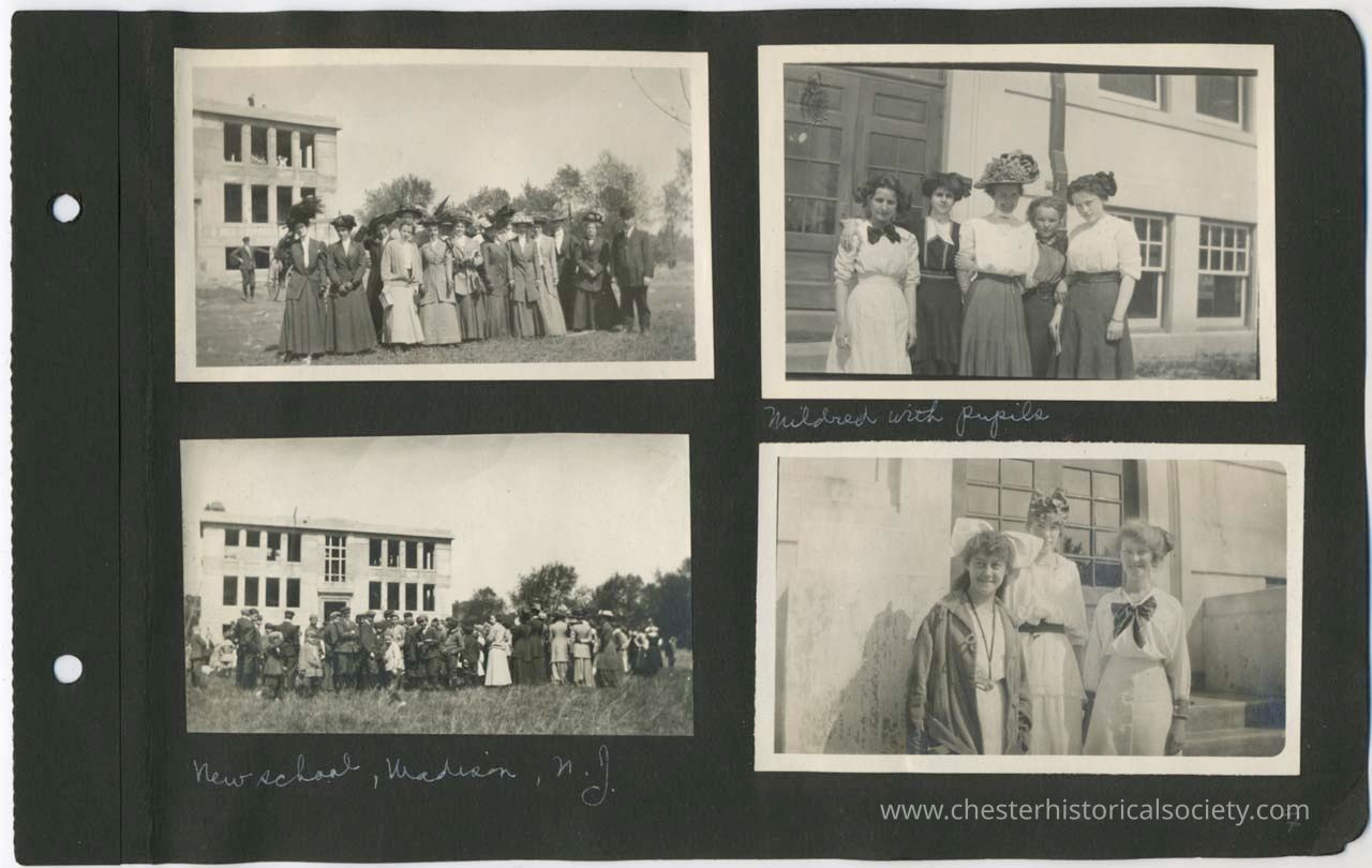 7 New school, Madison, N.J. (2); Mildred with pupils (2)