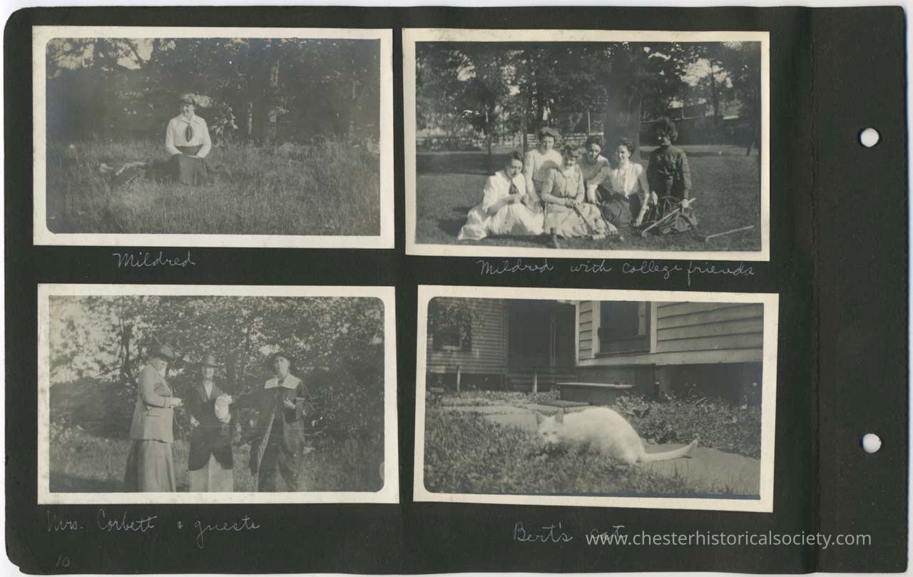 10 Mildred; Mildred with college friends; Mrs. Corbett & guests; Bert's cat