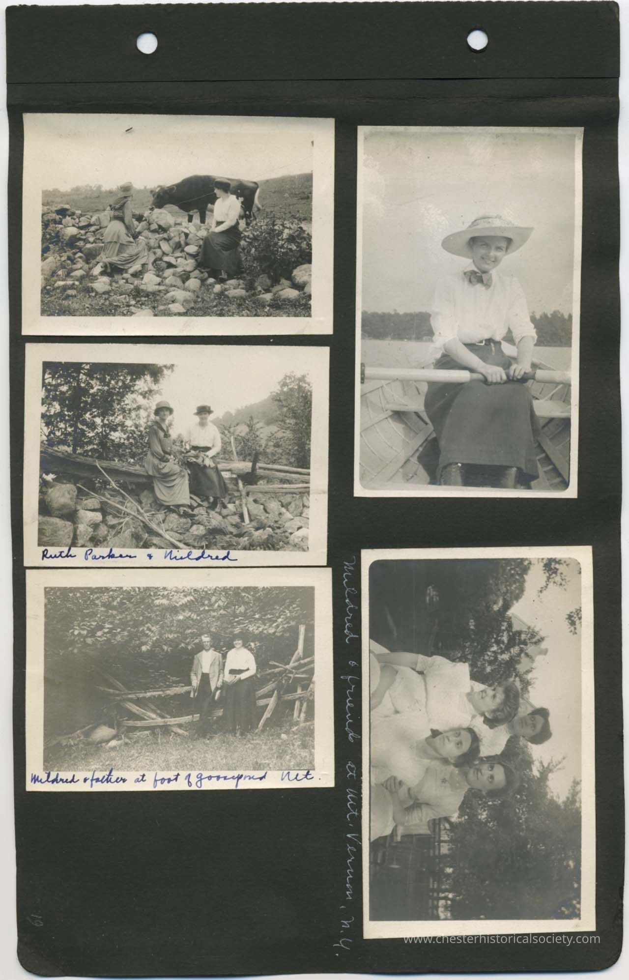 19 Ruth Parker; Mildred & father at foot of Goosepond Mt.; Mildred & friends at Mt. Vernon, N.Y.