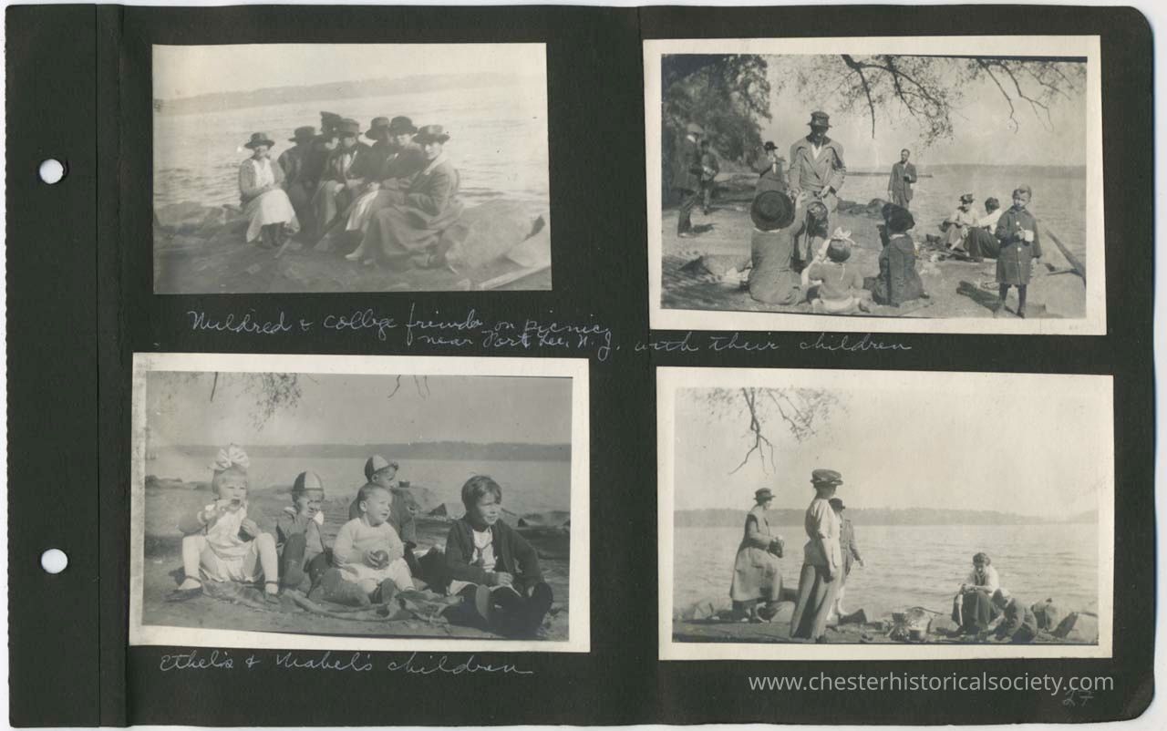 27 Mildred & college friends on picnic near Fort Lee, N. J. with children (3 photos); Ethel's & Mabel's children
