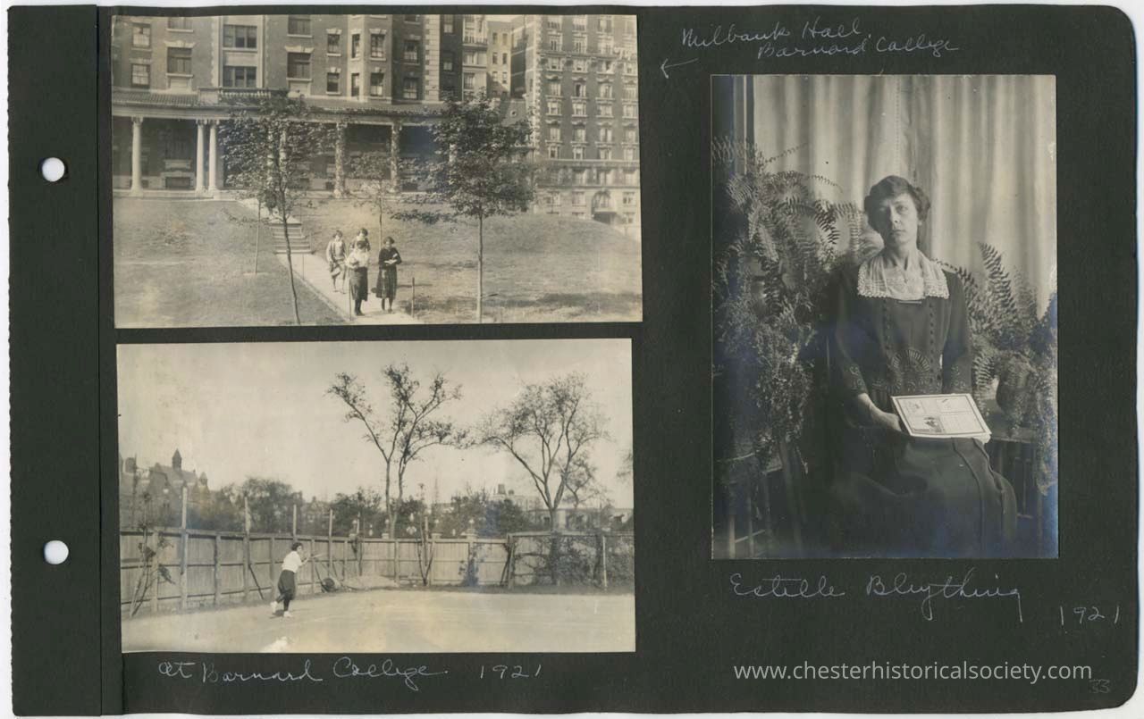 33 Milbank Hall, Barnard College; Estelle Blything 1921; At Barnard College, 1921