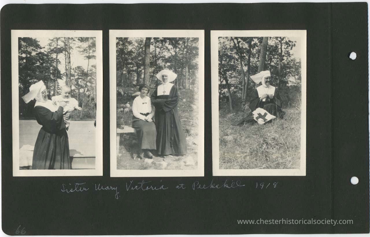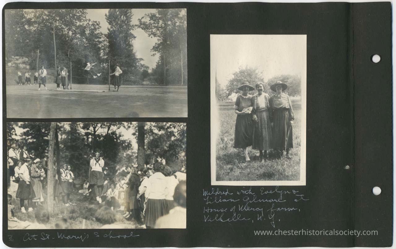 36 At St. Mary's School (two photos); Mildred with Evelyn & Lillian Gilmore at House of Mercy farm, Valhalla, N.Y.