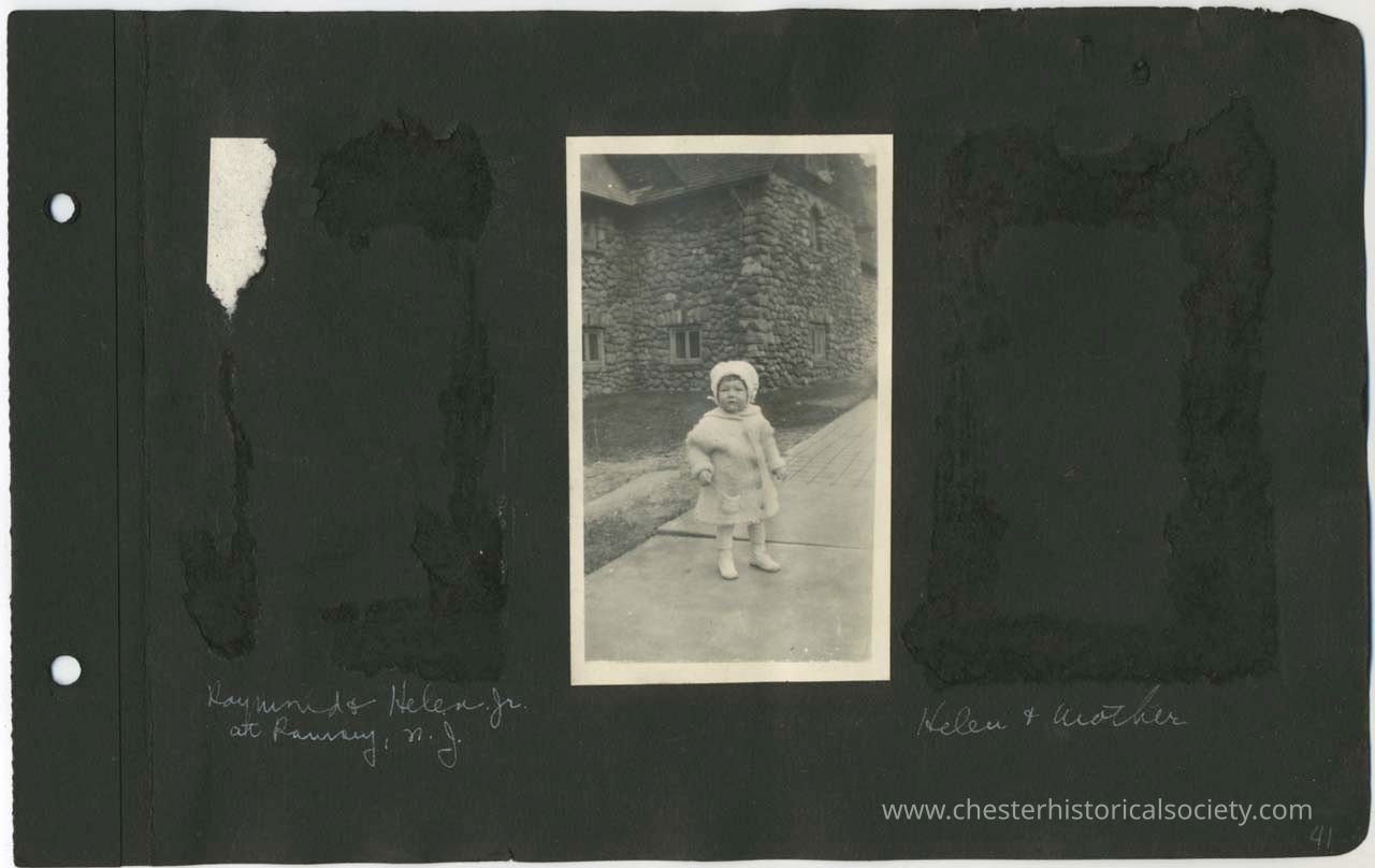 41 Raymond & Helen Jr. at Ramsey, N.J. (photo gone); (baby in front of cobblestone building); Helen & another (photo gone)