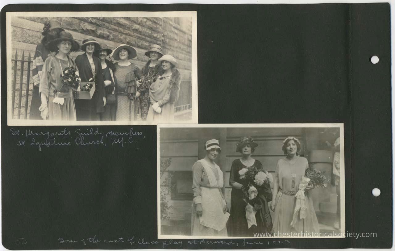 46 St. Margaret's Guild member, Wt. Ignatius Church, N.Y.C.; Some of the cast of class play at Barnard, June 1923