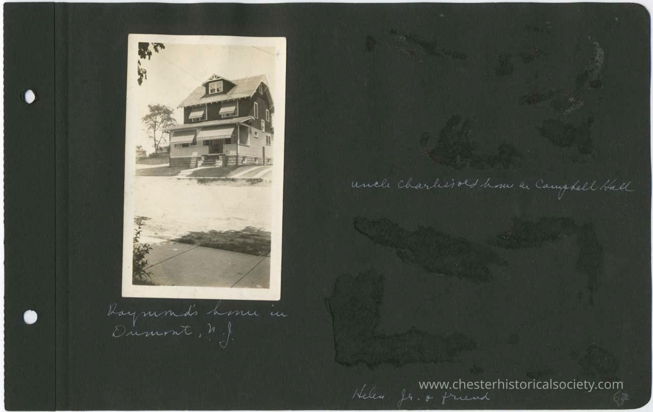 63 Raymond's home in Dumont, N.J.; (Photo gone) Uncle Charlie's old home at Campbell Hall; (Photo gone) Helen Jr. & friend