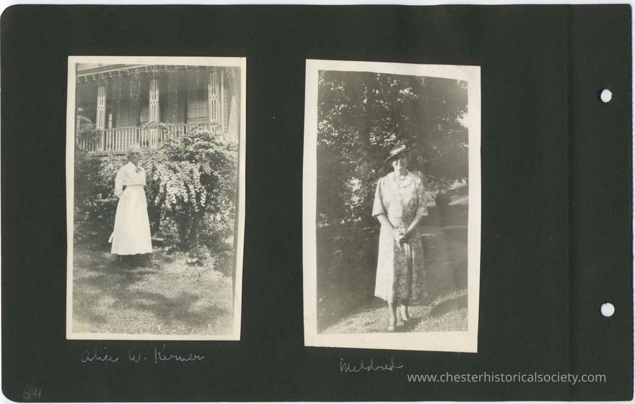 Kerner, Anna Mildred, 1888-1963, daughter of Kerner, Charles W., 1859-1921 and Kerner, Alice Wright, 1866-1950 (later Mrs. W. V. Seaman). Both father and daughter were known as local photographers active from the 1880s to the 1960s. They lived in the house between High & Main Streets opposite the Walton Hose Co. Firehouse.