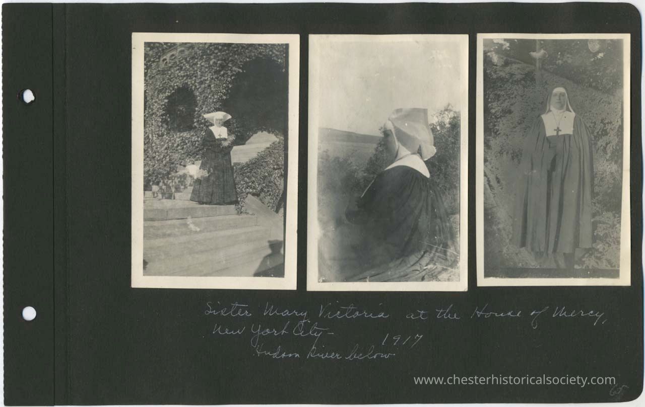 65 Sister Mary Victoria at the House of Mercy, New York City - 1917 - Hudson River below (three photos)
