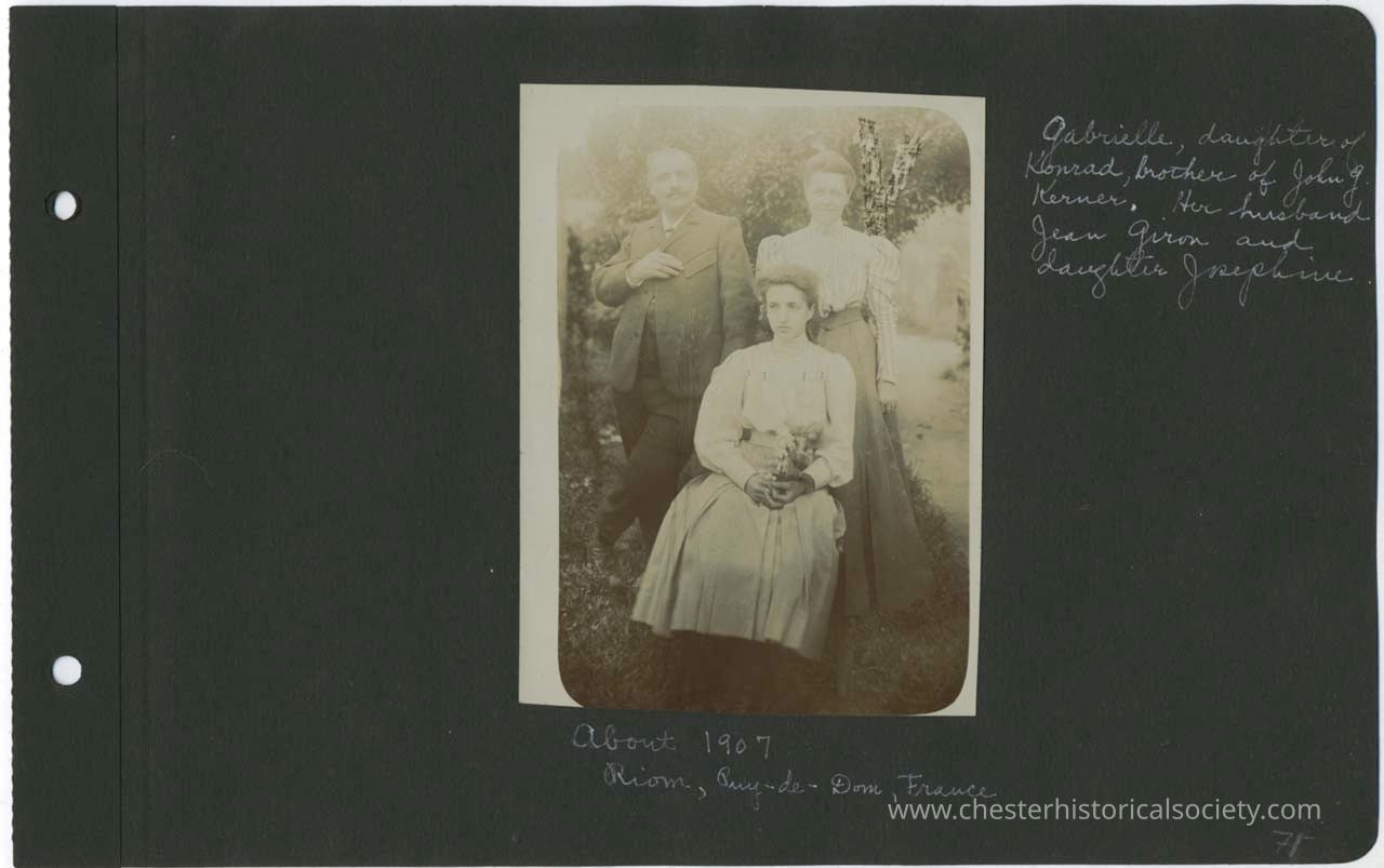 71 About 1907, Riom, Puy-de-Dom, France - Gabrielle, daughter of Konrad, brother of John J. Kerner. Her husband Jean Giron and daughter Josephine.