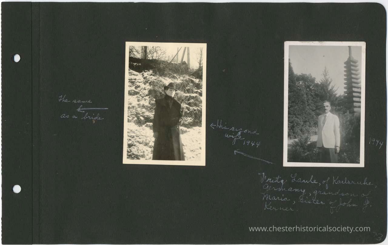 73 The ← as a bride; ←His second wife, 1944; ←Fritz Laule, of Karlsruhe, Germany, grandson of Maria, sister of John J. Kerner. 1944