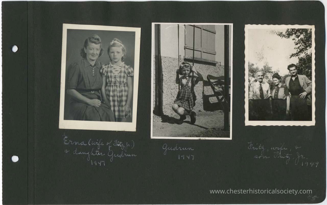 85 Erna (wife of Fritz Jr.) & daughter Gudrun 1947; Gudrun 1947; Firtz, wife, & son Fritz Jr. 1949