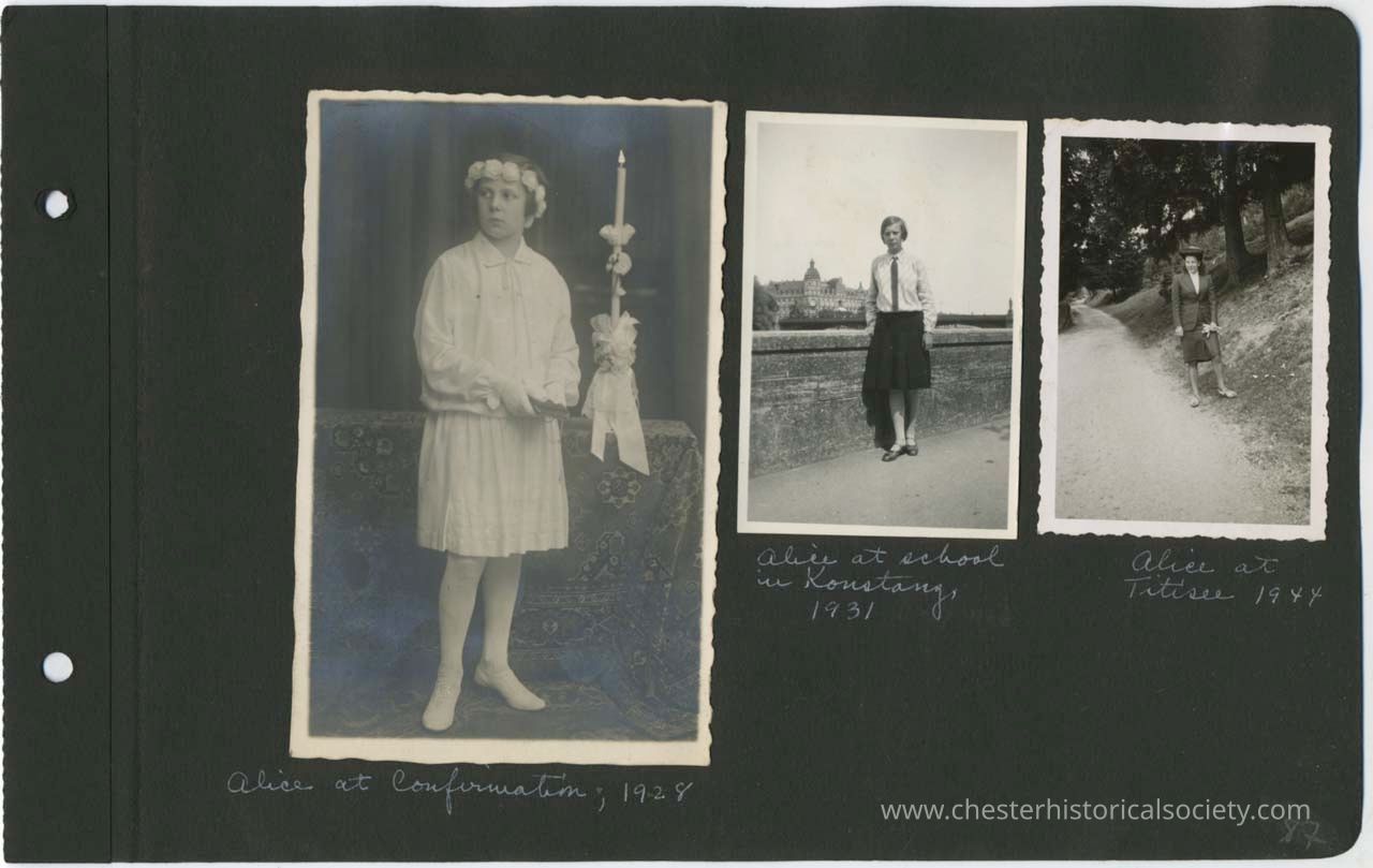 87 Alice at Confirmation, 1928; Alice at school in Konstang, 1931; Alice at Titsee 1944