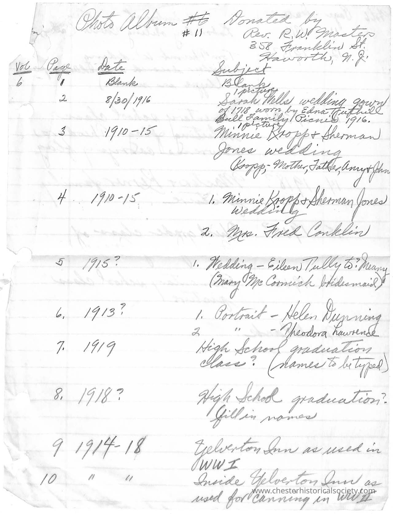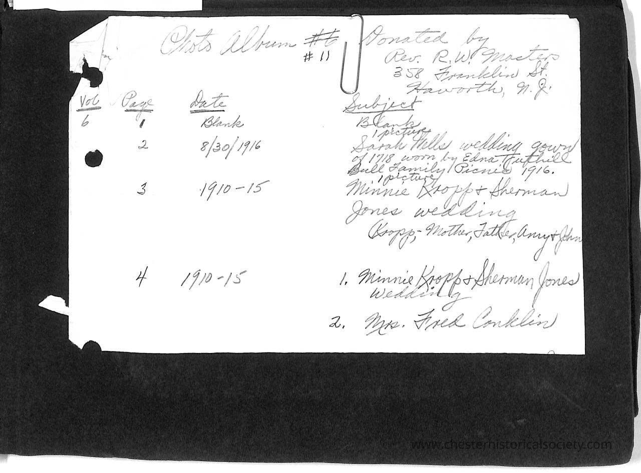 Insert – photo album # 11 donated by Rev. R. W. Masters – DD, 358 Franklin St., Haworth, N. Y.