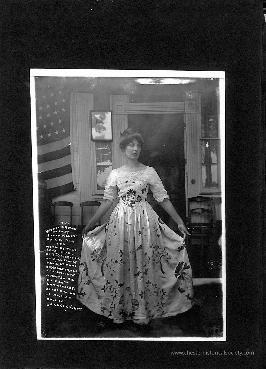 page 2 8/30/1916 Sarah Wells wedding gown of 1718 worn by Edna Tuthill Bull Family Picnic, at home of Hamlet S. Ro, N. Y. 1916.