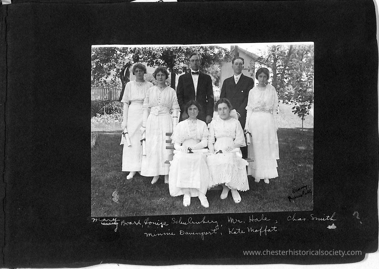 page 8 Mary Board, Louise Schulenbury, Mr. Hale, Chas. Smith, Minnie Davenport, Kate Moffat
