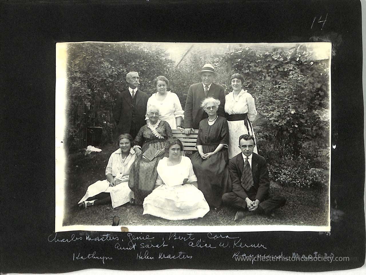 page 14 Charles Masters, Genie, Bert, Cora, Aunt Sarah, Alice W. Kerner, Kathryn, Ellen Masters, Raymond Masters