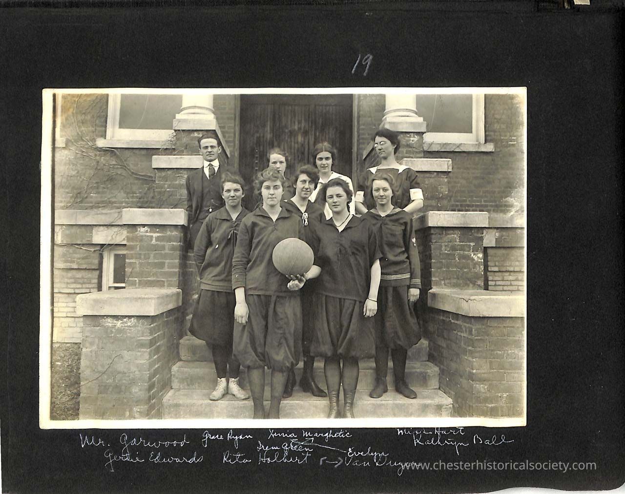 page 21 (basketball team) 19 Mr. Garwood, Grace Ryan, Xenia Marghetic, Ms. Hart, Gertie Edwards, Rita Holbart, Irene Green, Evelyn VanDuzer