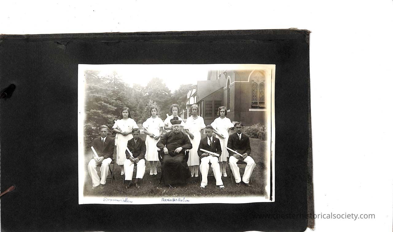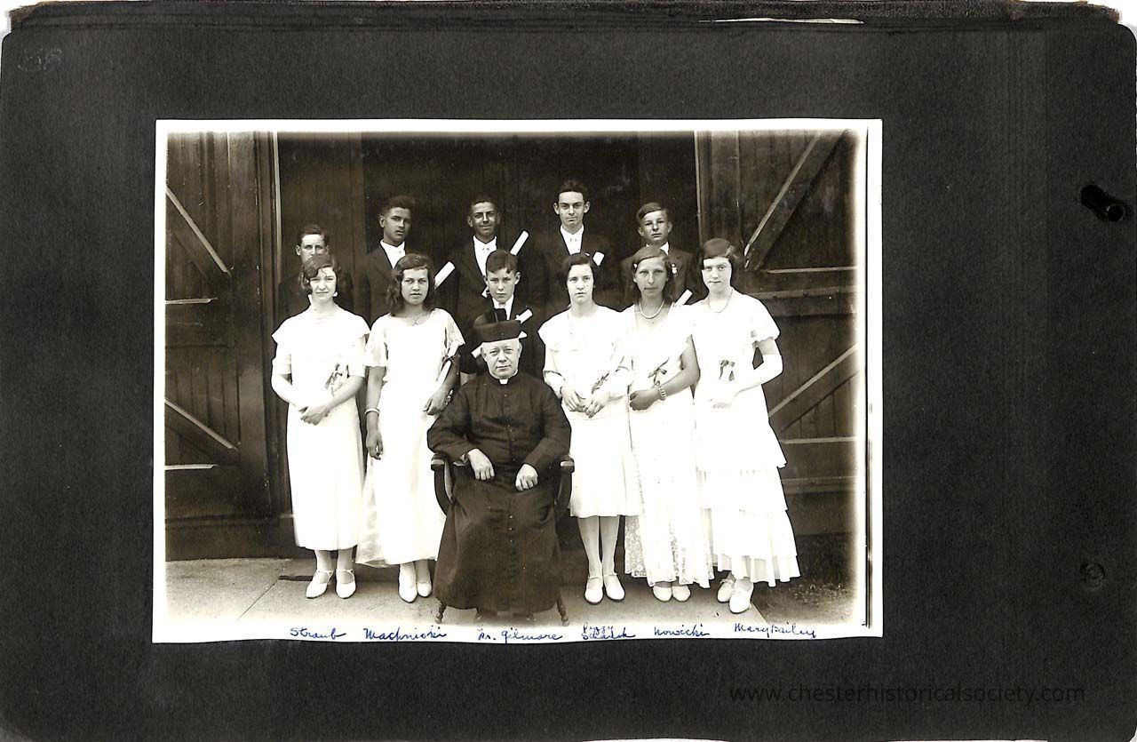 Page 38 St. Columba Graduation: Struab, Machniski, Fr. Gilmore, Peggy Schank, Nowicki, Mary Bailey