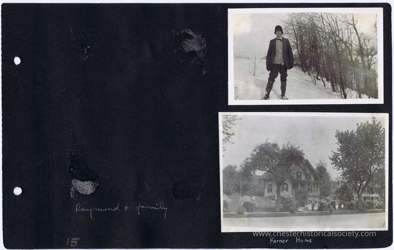 page 15 Raymond & family (photo missing); (Charles W. Kerner on snowshoes); Kerner Home