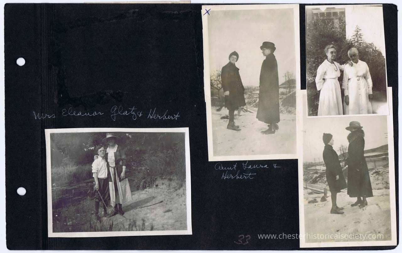 page 33 Mrs. Eleanor Glatz & Herbert; Aunt Laura & Herbert (two photos); (two ladies)