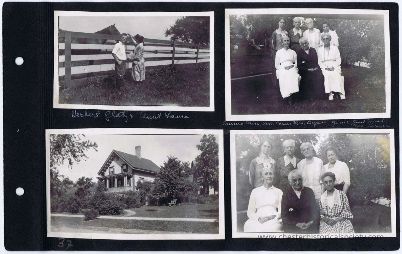 page 37 Herbert Glatz & Aunt Laura; Emma Cain, Mrs. Cain, Mrs. Bryan, Genie, Aunt Sarah, Mrs. Kerner; (Kerner House); (Emma Cain, Mrs. Cain, Mrs. Bryan, Genie, Aunt Sarah, Aunt Laura)