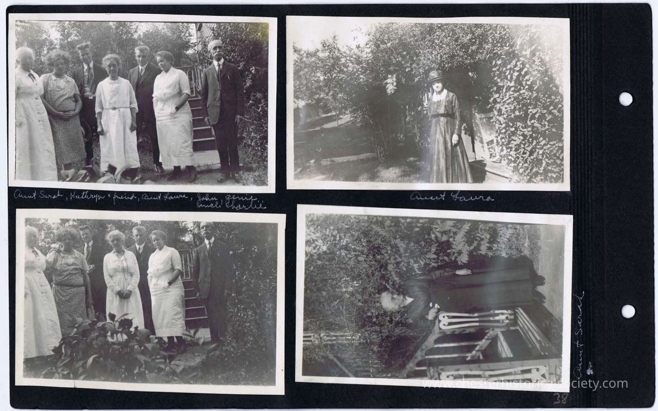 page 38 Aunt Sarah, Kathryn, & friend, Aunt Laura, John Genie, Uncle Charlie; Aunt Laura; (Aunt Sarah, Kathryn, & friend, Aunt Laura, John Genie, Uncle Charlie); Aunt Sarah