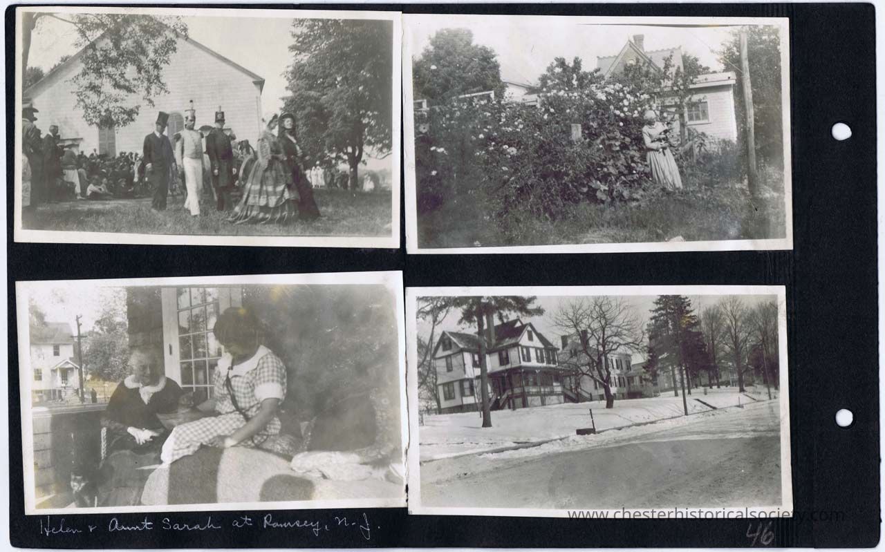 page 46 (procession from Blooming Grove Church); (lady in garden); Helen & Aunt Sarah at Ramsey, N. J.; (60-66 Main Street)