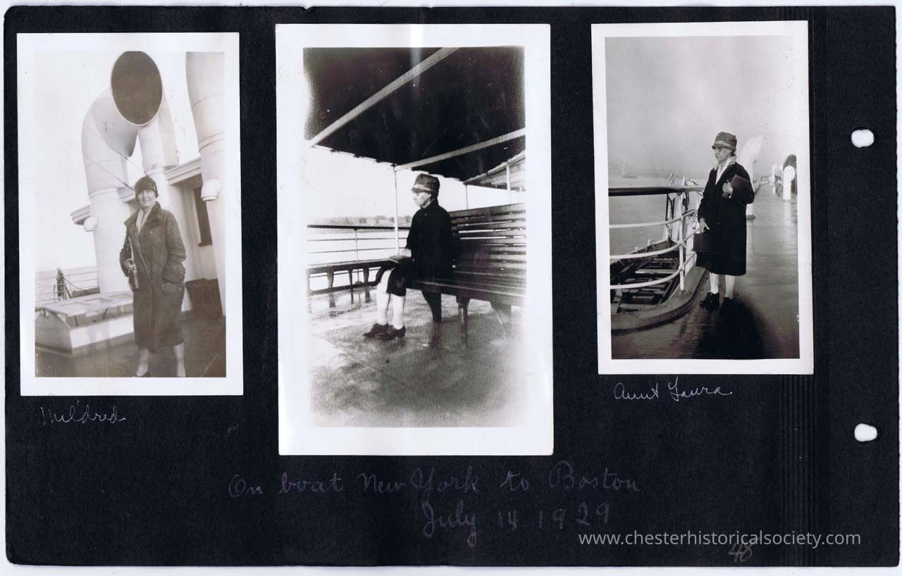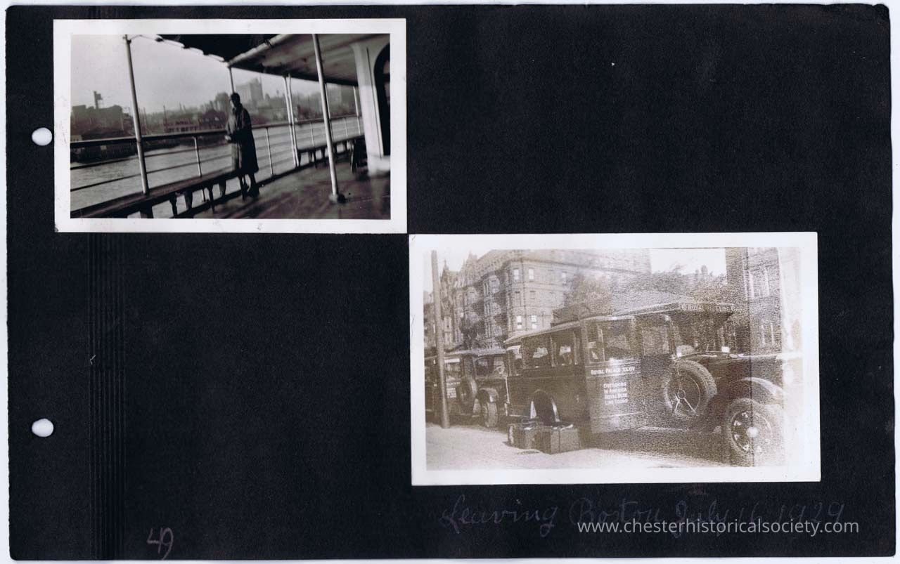page 49 (Mildred on boat New York to Boston); Leaving Boston, July 19, 1929
